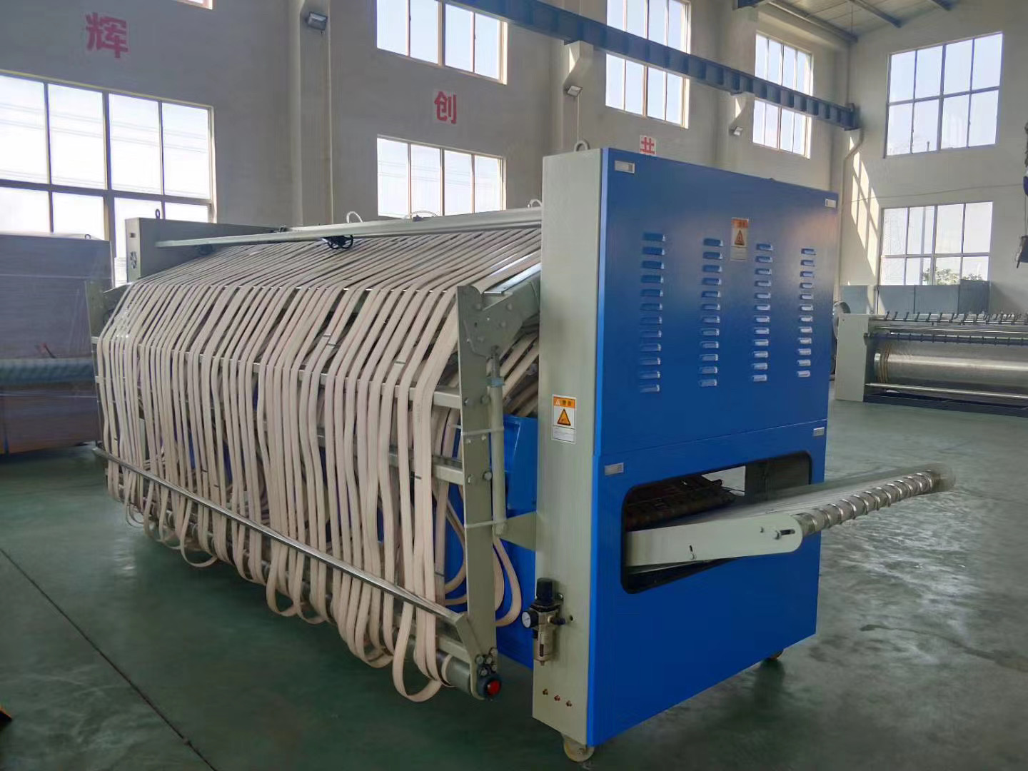 折疊機(jī)一款洗滌設(shè)備輔助機(jī)械產(chǎn)品,控制布料傳送系統(tǒng)的速度和定位,測定布料長度并計算折疊長度,通過氣流的噴射和折刀來完成水平折疊和交叉折疊。
